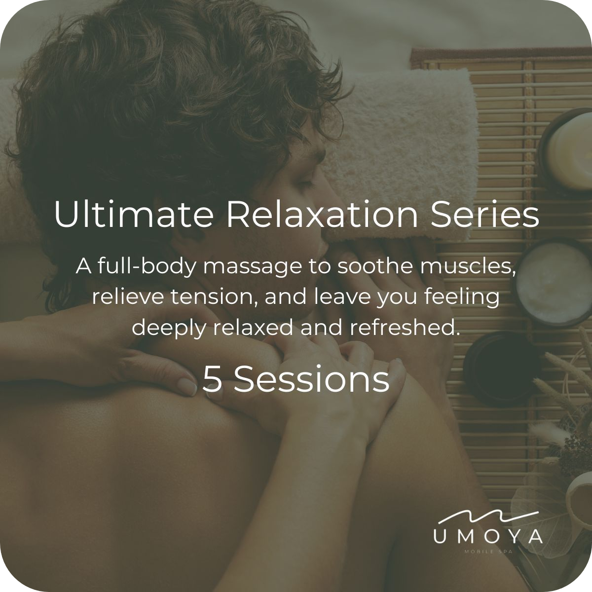 A full-body massage to soothe muscles, relieve tension, and leave you feeling deeply relaxed and refreshed. 90mins for 5 sessions